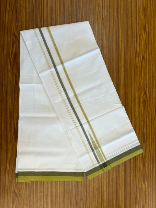 20% Discount ! New! KaithariKada Balaramapuram 100% Cotton Pure white Double Mundu/Dhoti - (100x80)s - 1.5 inch Mustard Yellow Sage Green chutty - 24 KK5249 VIN