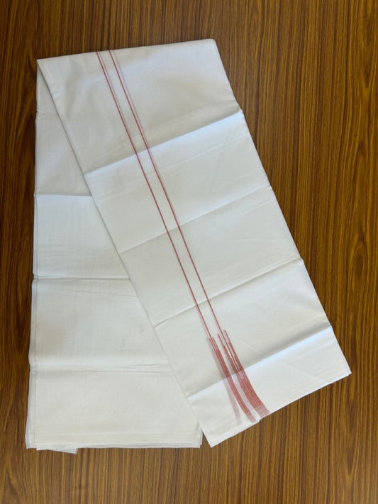 20% Discount!! New!! KaithariKada Balaramapuram 100% Cotton Pure White Double Mundu/Dhoti - (100x80)s - 0.75 inch Brick Red Line chutty - 6 KK5249 VIN