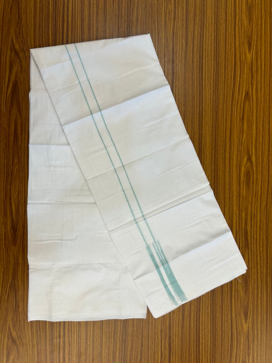 20% Discount!! New!! KaithariKada Balaramapuram 100% Cotton Pure White Double Mundu/Dhoti - (100x80)s - 0.75 inch Sage Green Line chutty - 1 KK5249 VIN