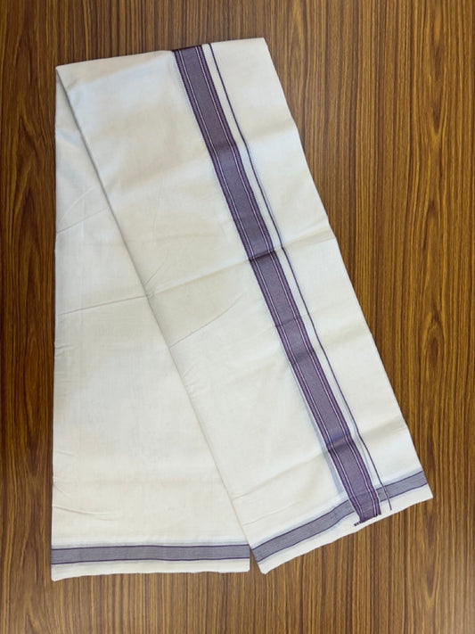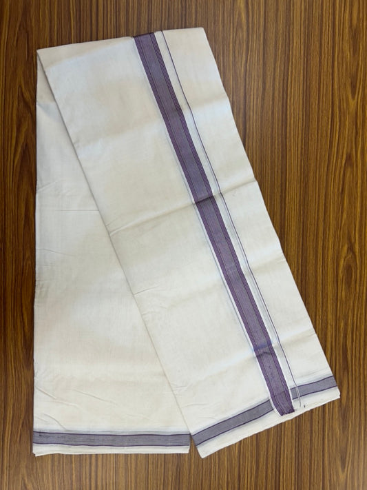 25% Discount!! KaithariKada Handloom Unakkupaav Balaramapuram - 100% Pure Cotton Off White Double - (Unbleached) Mundu/Dothi - 1.5 Inch Silver Kasav & Violet Stripes kara 4 mtr (8.5 muzham) - 54 KK5234 RAM