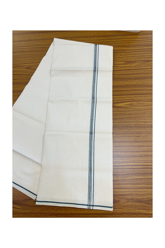 24% Discount !! KaithariKada Balaramapuram 100% Cotton Off White (Unbleached) Single Mundu/Dhoti - Twisted 60s Thread - 0.5 cm Dark Green Kara (2 meter / 4 muzham) - 14KK5236 GL