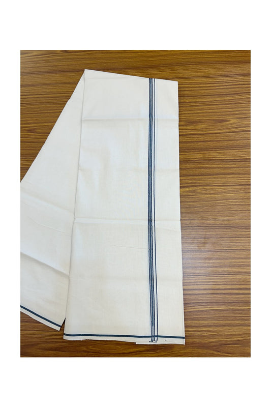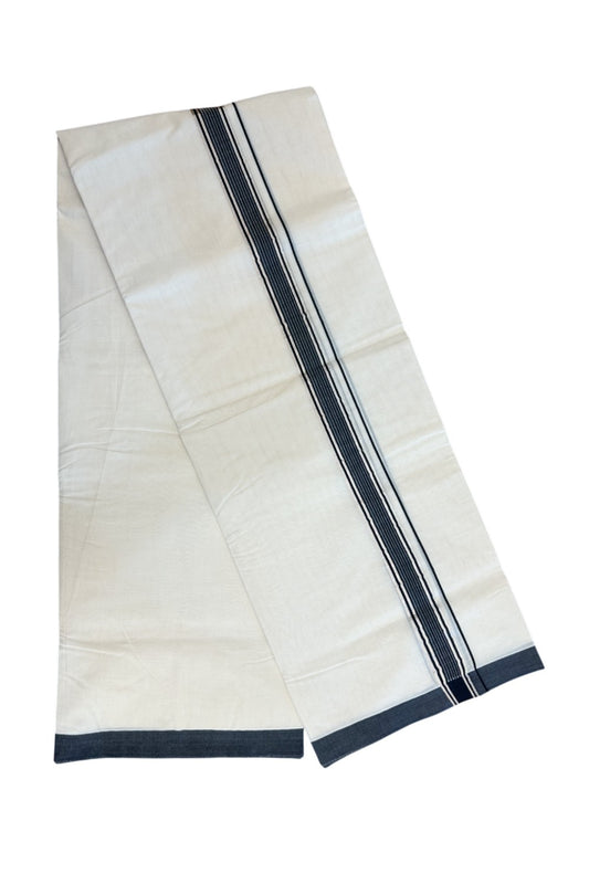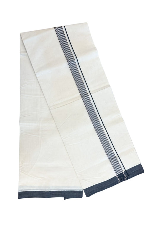 New !! 20% Discount! KaithariKada Balaramapuram 100% Cotton Double Off white - (Unbleached) Mundu/Dhoti-100x100 - 1.5 cm Silver Kasav & Blue Shaded Striped Design KARA - 4.36 mtr (9.34 Muzham) - 8KK5238 ASH
