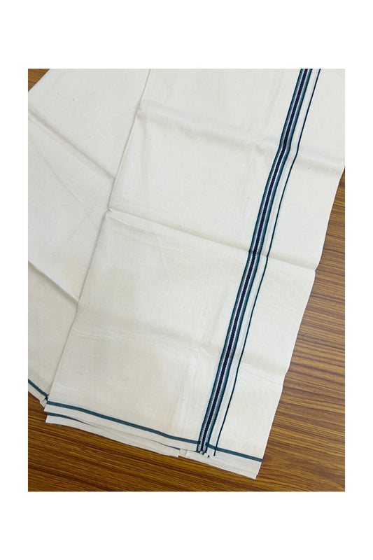 24% Discount !! KaithariKada Balaramapuram 100% Cotton Off White (Unbleached) Single Mundu/Dhoti - Twisted 60s Thread - 1.5 cm Silver Kasav Green & Navy Blue Kara (2 meter / 4 muzham) - 2KK5236 GL