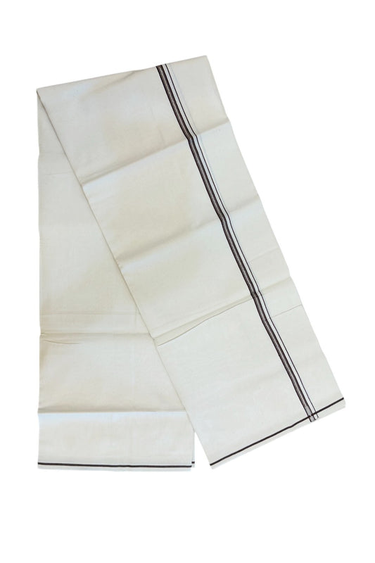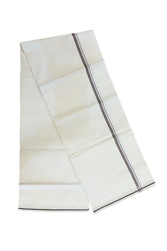 25% Discount! KaithariKada Handloom Unakkupaav Balaramapuram - 100% Pure Cotton Off White (Unbleached) Double Mundu/Dhoti - 80x90 - 2.5 cm Brown & Black stripes chutty 4 Mtr (8.5 Muzham) - 27KK5235 YAR