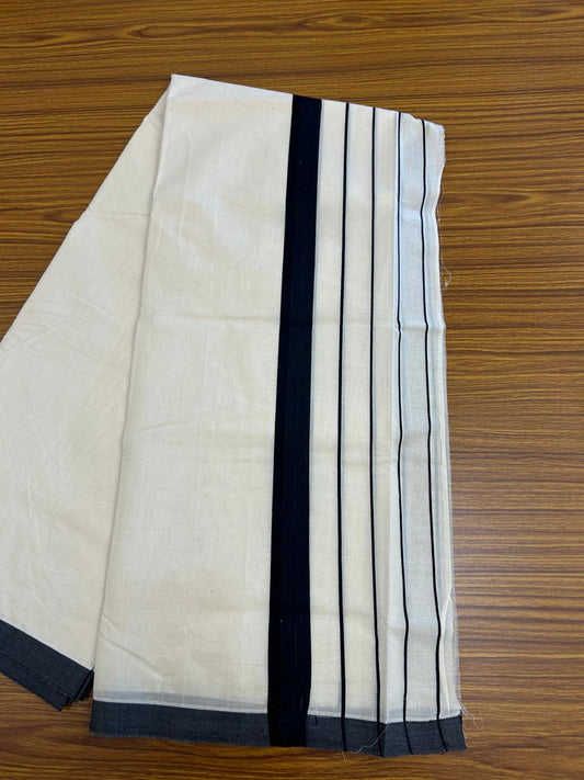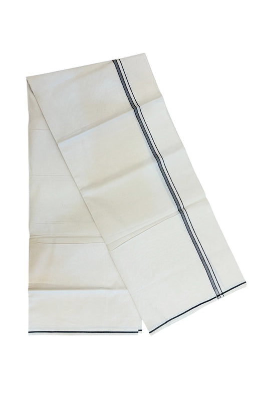 20% Discount KaithariKada Balaramapuram 100% Cotton Double Off white - (Unbleached) - Mundu/Dhoti - 100x100 - 1 inch Silver Kasav & Black Striped Kara - 4mtr (8.5 muzham)- 6KK5238 ASH