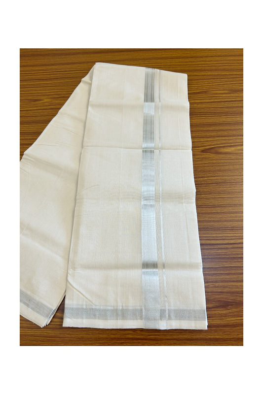 25% Discount! KaithariKada Handloom Millpaav Balaramapuram - 100% Pure Cotton Off White - (Unbleached) - Double Mundu/Dhoti - 1.75inch Silver Kasavu Striped - 10KK498KK