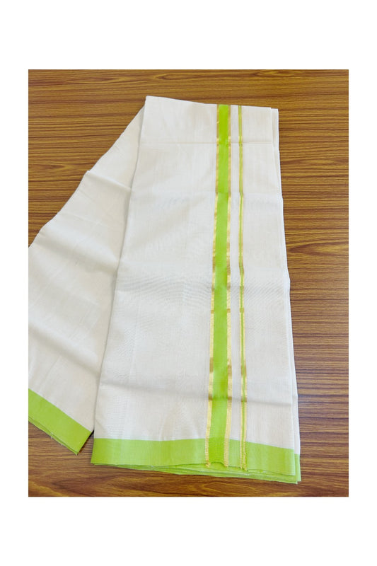 25% Discount KaithariKada Handloom Unakkupaav Balaramapuram - 100% Pure Cotton Off White - (Unbleached) Double Mundu/Dhoti - 1.85 inch Kasav & Light Green Kara- 11KK498KK