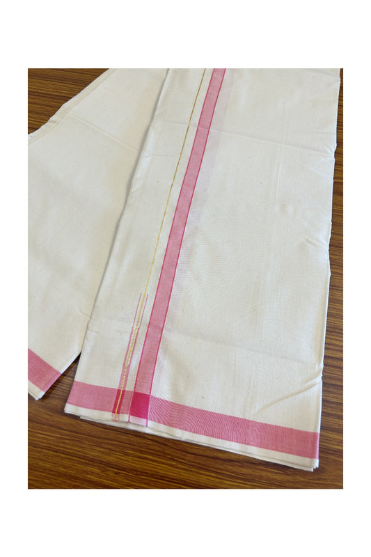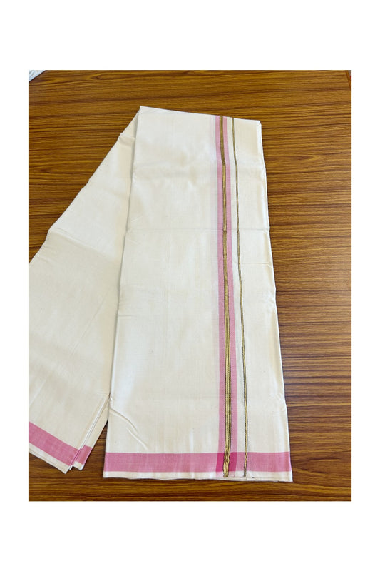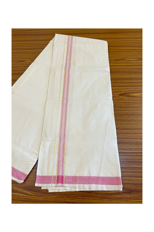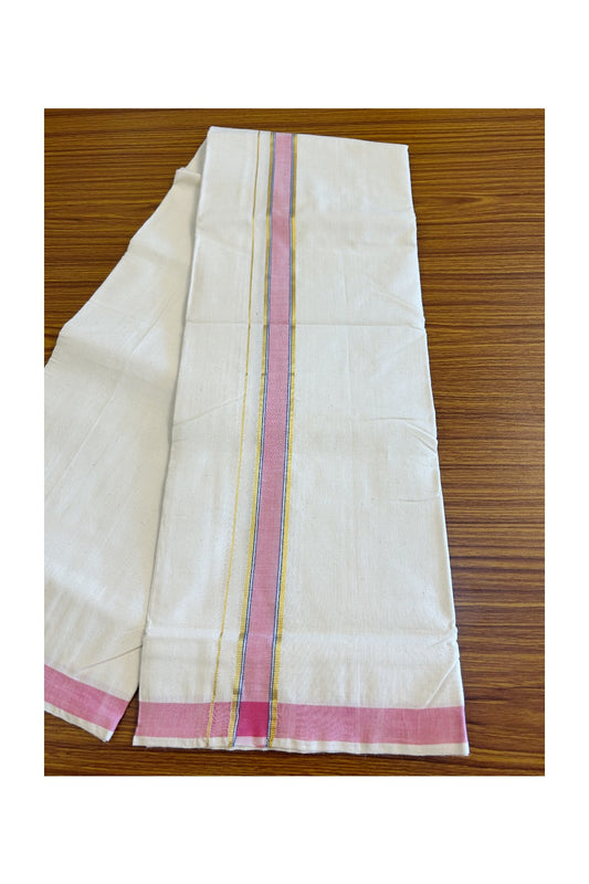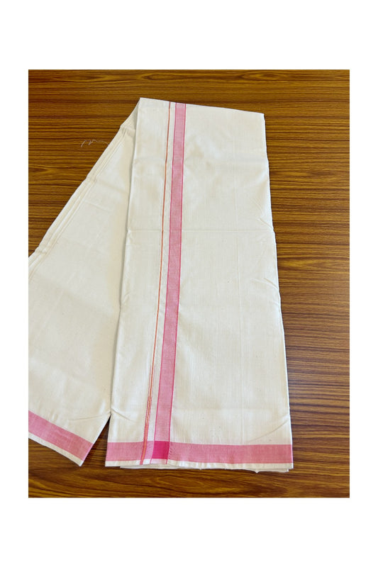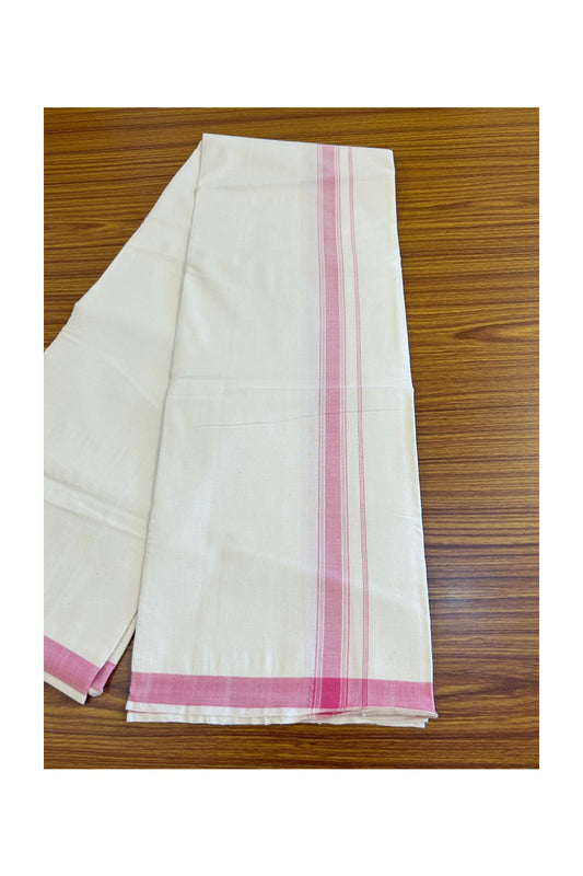 KaithariKada 100% Cotton Balaramapuram Handloom Single Mundu/Dhoti - Off White (Unbleached) 1.45 inch Kasavu & Pink striped Kara (2 meter / 4 muzham) - 10KK499KK.