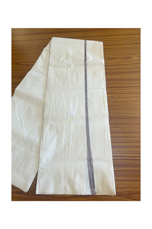 12% Discount! KaithariKada Balaramapuram 100% Cotton Single Off White - (Unbleached) Mundu/Dhoti-Twisted 100s Thread- 1.25 inch Brown Puliyilakkara Chutty (2 meter / 4 muzham) - 4KK497ASH