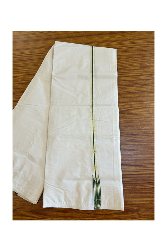 21% Discount!! KaithariKada Balaramapuram 100% Cotton Off White Double - (Unbleached) Mundu/Dhoti-100x100 2 cm Puliyilakkara chutty 6 line Kasav & Fern green - 53KK500KK