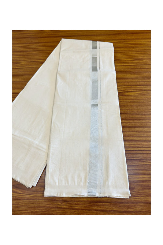 25% Discount KaithariKada 100% Cotton Balaramapuram Handloom Single Mundu/Dhoti - Off White - (Unbleached) 1.25 inch Silver Kasavu Kara Stripes &(2 meter / 4 muzham)- 1KK499KK
