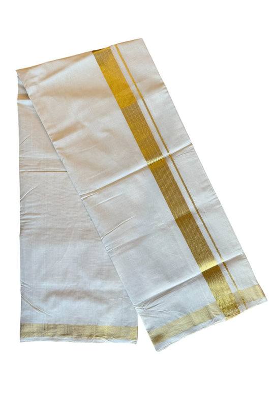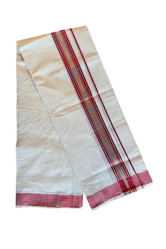 25% Discount!! KaithariKada Handloom Millpaav Balaramapuram - 100% Pure Cotton Off White - (Unbleached) Double Mundu/Dothi - 3 inch Maroon Gold kasav stripes kara - 9KK495RAM