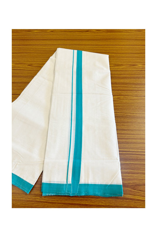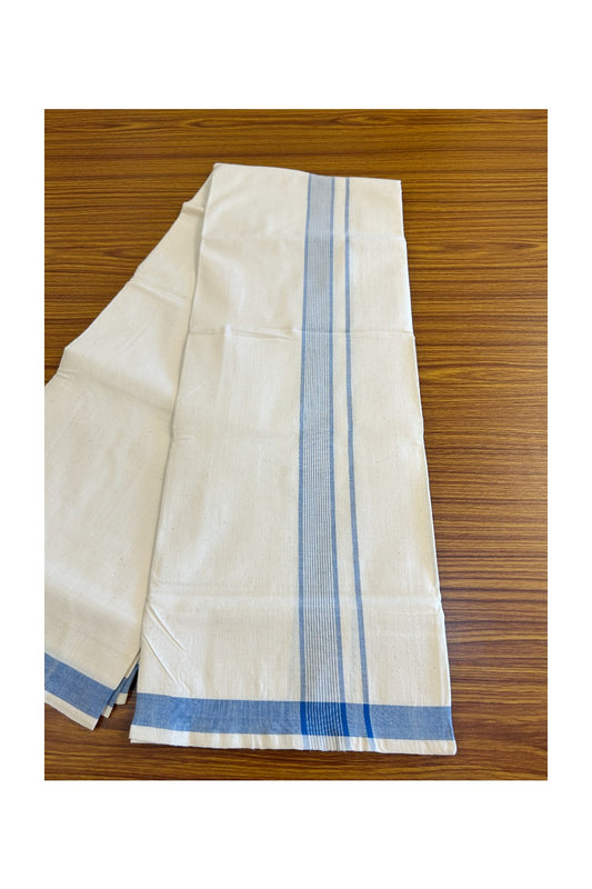 25% Discount!! KaithariKada Handloom Unakkupaav Balaramapuram - 100% Pure Cotton Off White - (Unbleached) Double Mundu/Dothi - 1.75 inch Blue Black Turquoise Stripes Mulloth Kara 4.5 Meters (10 Muzham) - 5KK494SOM