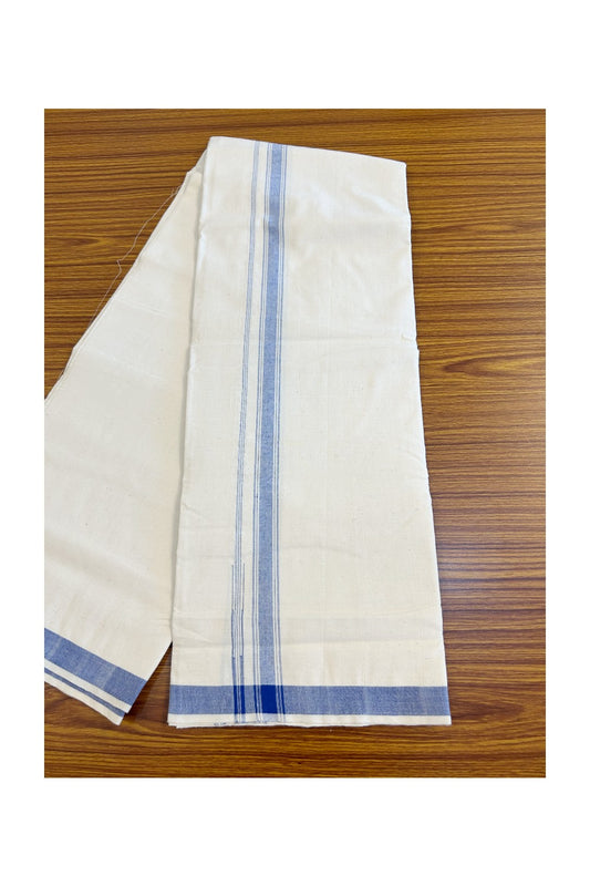 25% Discount KaithariKada 100% Cotton Balaramapuram Handloom Single Mundu/Dhoti - Off White- (Unbleached) 2 inch Blue Stripes Kara (2 meter / 4 muzham) - 4KK499KK