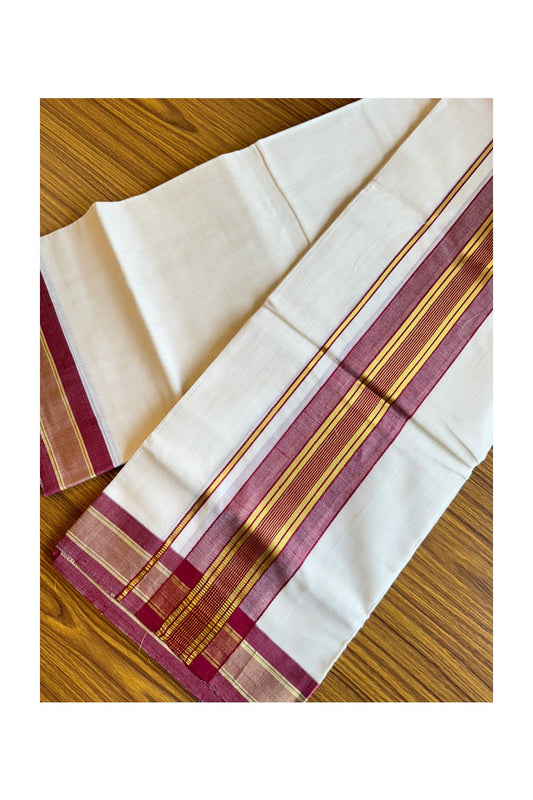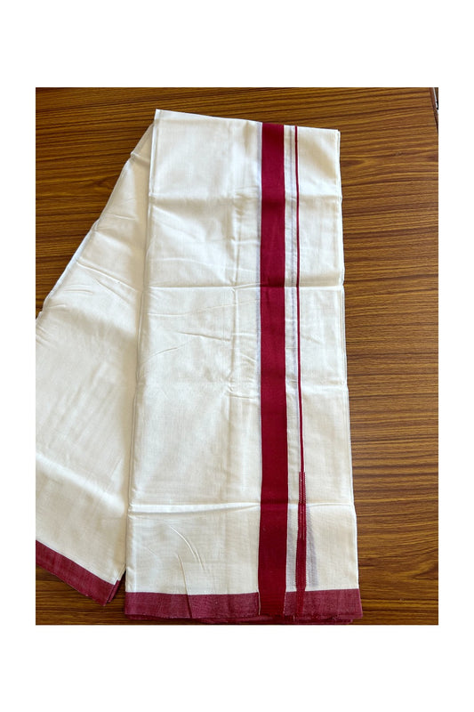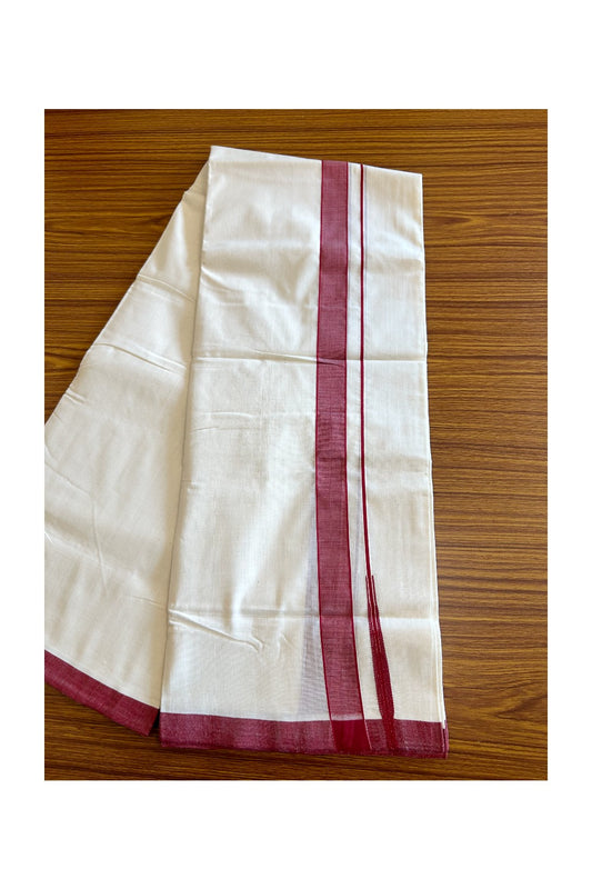 25% Discount!! KaithariKada Handloom Unakkupaavu Balaramapuram - 100% Pure Cotton Off White (Unbleached) Double Mundu/Dothi - 1.25 inch puliyilakkara Maroon chutty- 17KK400ASH
