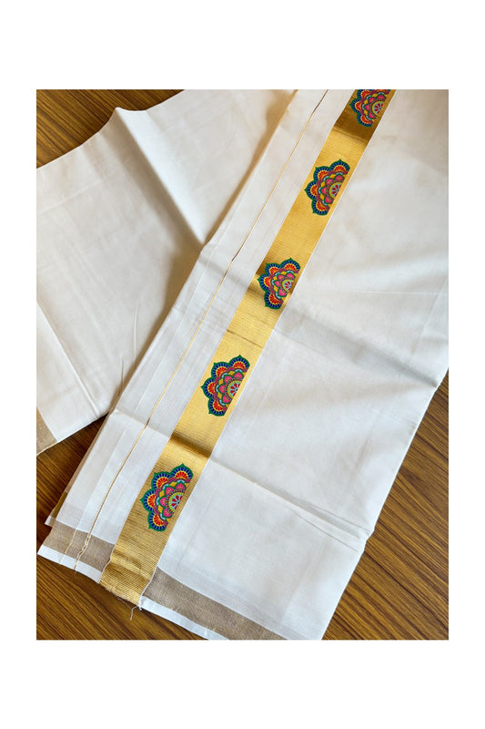 20% Discount !! KaithariKada Balaramapuram Mixed Cotton Double Off white - (Unbleached) Mundu/Dhoti-80x72- Hand Painted Flower & Kasav Design - 14KK207PMC