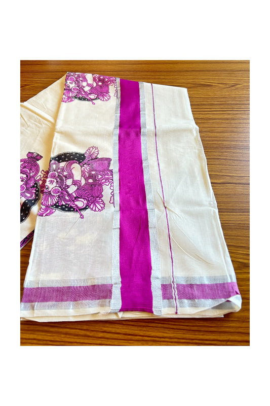 25% Discount! Kaitharikada Kerala Saree - Cotton Off white - Silver Kasavu & Pink Zari with Mural Prints-19KK300VIN