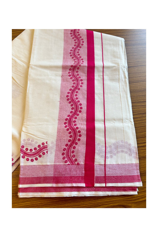 25% Discount! Kaitharikada Kerala Saree - Cotton Off white - Pink Deep Kara with Floral Prints - 24KK300VIN