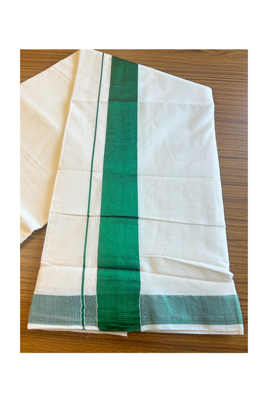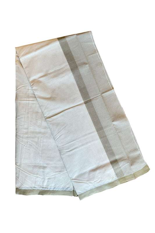 36% DISCOUNT! KaithariKada Balaramapuram 100% Cotton Double Off white Mundu/Dhoti - 100x100 Sage Green Stripes Kara - 9KK400ASH