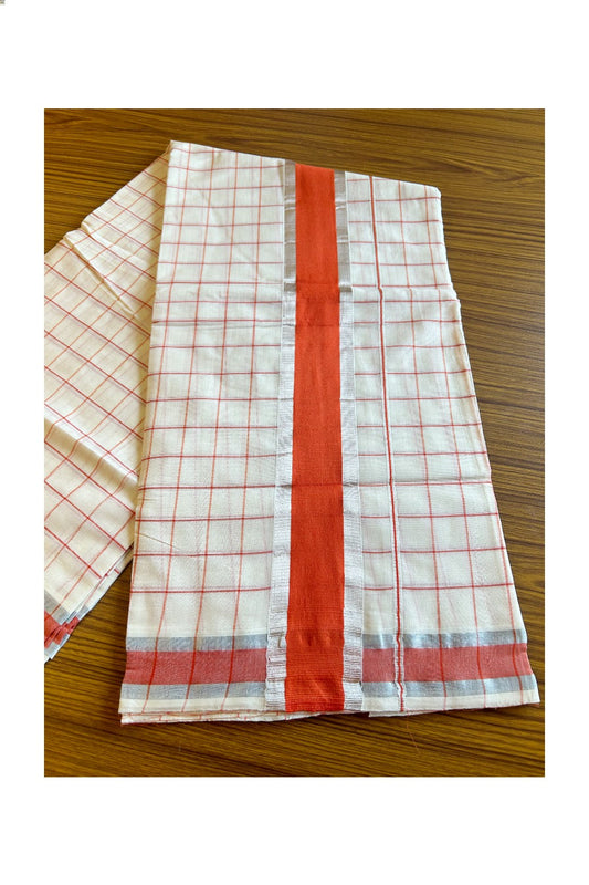 25% Discount! Kaitharikada Kerala Saree - Cotton - Silver Kasavu Brick Red Kara with check patterns- 8KK300VIN