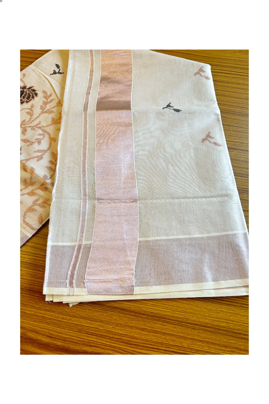 25% Discount! Kaitharikada Kerala Saree - Kasavu Tissue - Kasavu Zari Floral Embroidery- 7KK300VIN