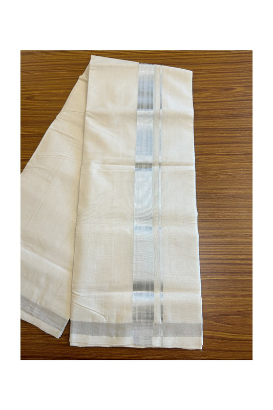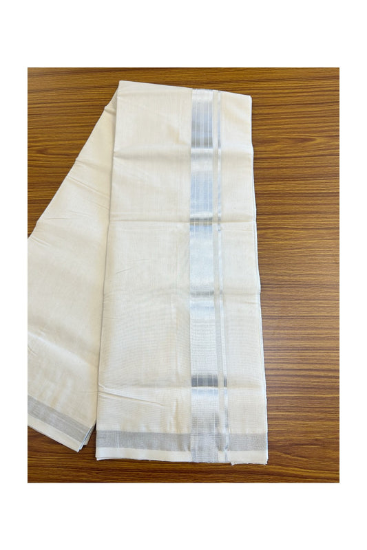 25% Discount ! KaithariKada Handloom Millpaav Balaramapuram - 100% Pure Cotton Off White (Unbleached) Double Mundu/Dhoti - Silver Kasav Stripes Design - 12KK37RAM