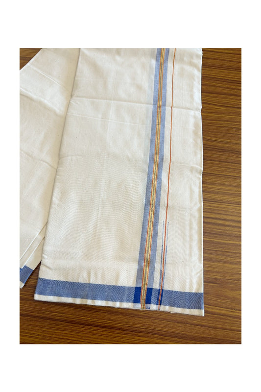 25% Discount ! KaithariKada Balaramapuram Handloom Unakkupaav- 100% Pure Cotton off white (Unbleached) 100x100 3.80 Meter Double Mundu/Dhoti (8 Muzham)- Sky Blue Kara
