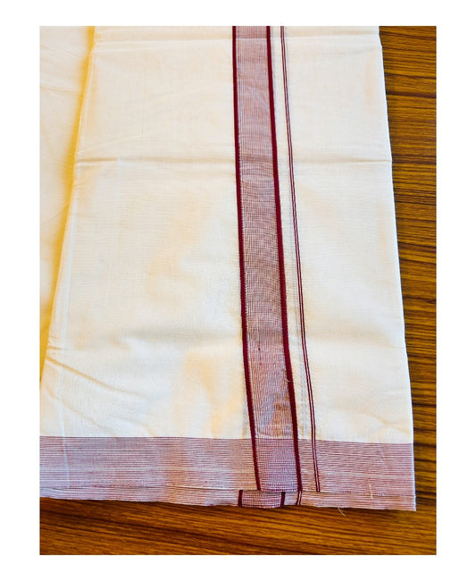 22% Discount! KaithariKada Balaramapuram 100% Cotton Double Off white - (Unbleached) Mundu/Dhoti-100x100 Maroon 1inch Stripes Kara.