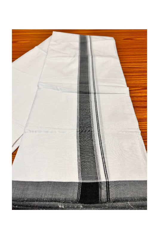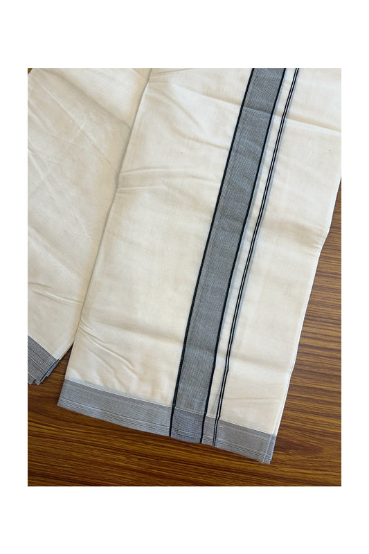 20% Discount! KaithariKada Balaramapuram 100% Cotton Double Off white- (Unbleached) - Mundu/Dhoti-100x100 - 1.75inch Black Stripes Kara - 4