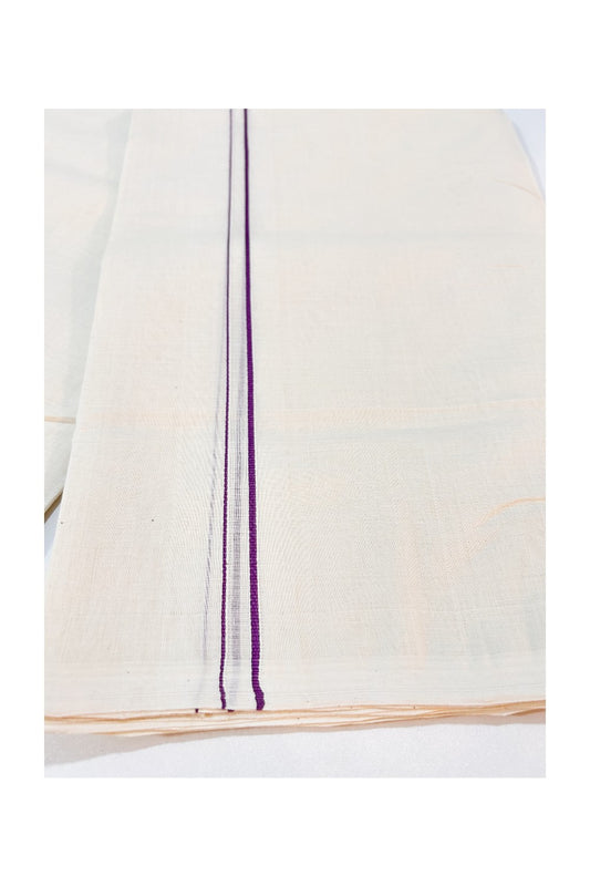 25% Discount! KaithariKada Handloom Millpaav Balaramapuram - 100% Pure Cotton Off White Double (Unbleached) Mundu/Dhoti - 1cm Violet Erkkilkara - 85