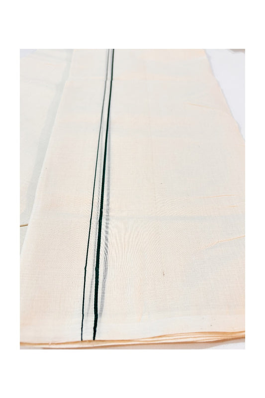 25% Discount! KaithariKada Handloom Millpaav Balaramapuram - 100% Pure Cotton Off White Double (Unbleached) Mundu/Dhoti - 1cm Dark Green Erkkilkara - 87