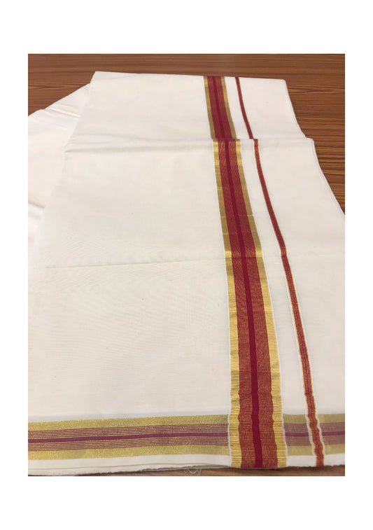 15% Discount KaithariKada Balaramapuram 100% Cotton Double Off white - (Unbleached) - Mundu/Dhoti-100x100 - 2 inch Bright Red Kara - 6