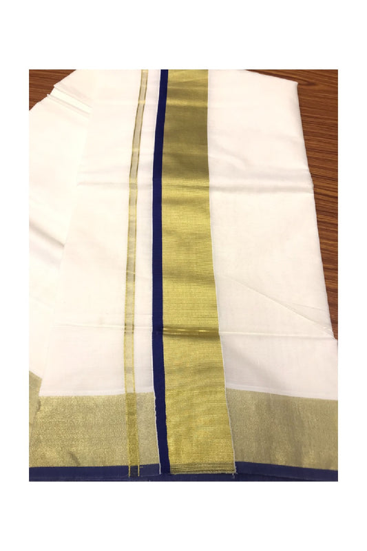 20% Discount Kaitharikada Kerala Saree - Cotton Kasavu Saree 4 Inch Pallu - Blue Kasavu Kara - 2