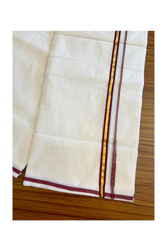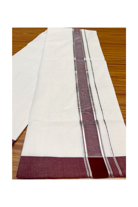 25% Discount KaithariKada Handloom Unakkupaav Balaramapuram - 100% Pure Cotton off white (Unbleached) Double Mundu/Dhoti - 2.75 inch Maroon Brown Silver Kasavu-116