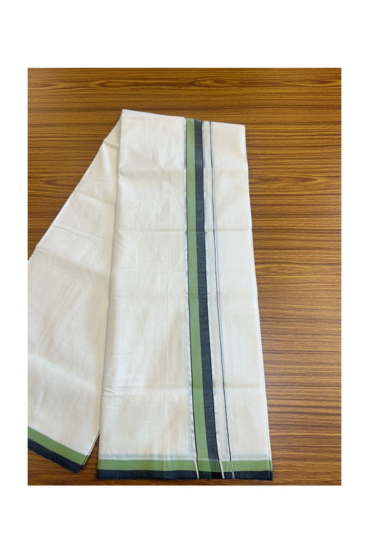 25% Discount KaithariKada Handloom Unakkupaav Balaramapuram - 100% Pure Cotton off white (Unbleached) Double Mundu/Dhoti - 2.inch Silver Kasav Green & Black-155