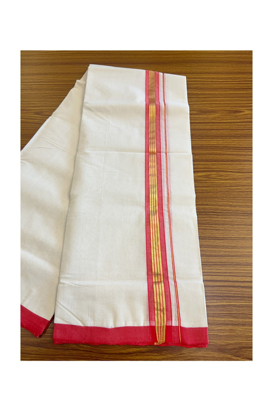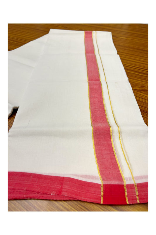25% Discount! KaithariKada Handloom Unakkupaav Balaramapuram - 100% Pure Cotton Double Pure White Mundu/Dhoti - 2 inch Red & Kasav Stripes-152