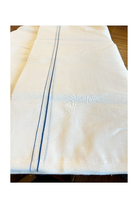 25% Discount KaithariKada Handloom Millpaav Balaramapuram - 100% Pure Cotton Off White (Unbleached) Double Mundu/Dhoti - 1cm Navy Blue Kara-177