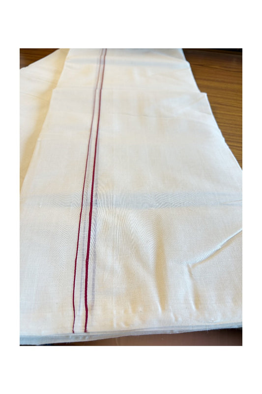 25% Discount KaithariKada Handloom Unakkupaav Balaramapuram - 100% Pure Cotton off white (Unbleached) Double Mundu/Dhoti - 1.5cm Maroon Stripes & Kasavu-90