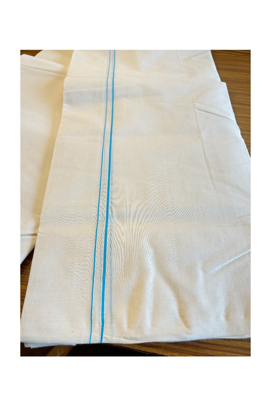 25% Discount! KaithariKada Handloom Millpaav Balaramapuram - 100% Pure Cotton Off White (Unbleached) Double Mundu/Dhoti - 1cm Sky Blue-180