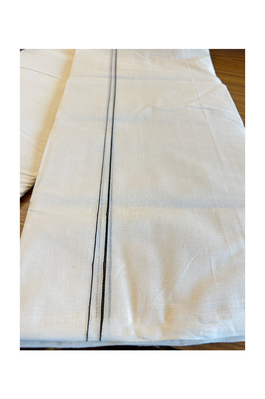 25% Discount! KaithariKada Handloom Millpaav Balaramapuram - 100% Pure Cotton Off White (Unbleached) Double Mundu/Dhoti - 1cm Black Kara-181
