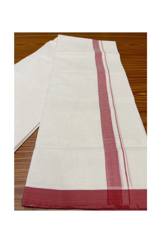 25% Discount! KaithariKada Handloom Unakkupaav Balaramapuram - 2inch 100% Pure Cotton off white (Unbleached) Double Mundu/Dhoti - Light Maroon Mulloth Design-93