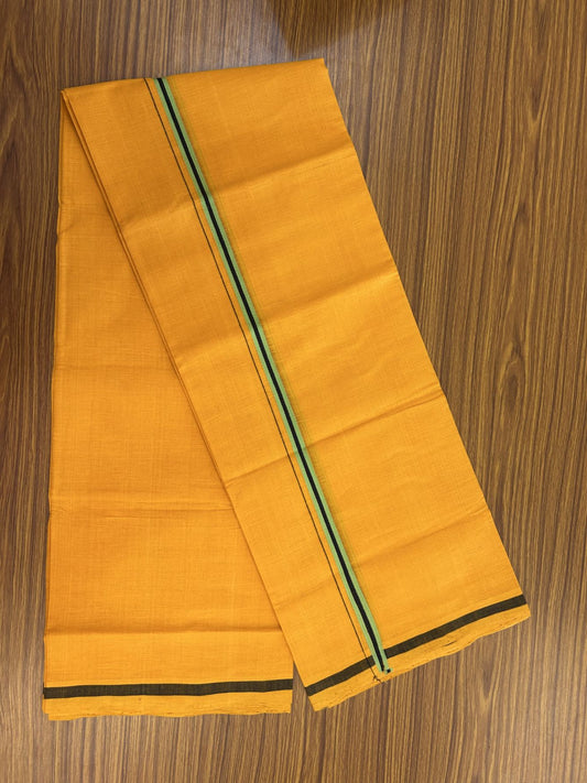 Handloom Single Hallmarked - 10% Discount !! KaithariKada 100% Pure Cotton - Mundu/Dhoti 1 cm Black Green Kara with Light Orange colour Body - (2 meter / 4 muzham) - 21 KK8044 ELA