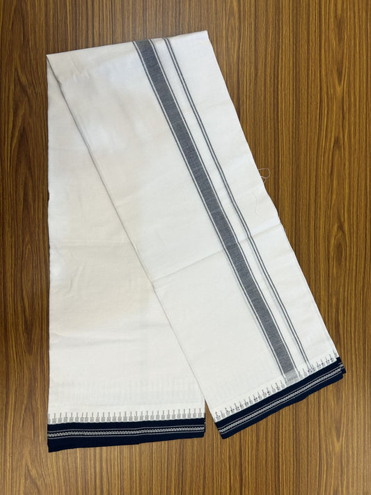 Premium Kathar Type Mercerised Pure Cotton Single Mundu Kaitharikada Special - Kaily / Lungi - 60s - 1 inch Ash Blue Striped kara White Body Kuppadam Border (2 meter / 4 muzham) - 9 KK5316 MR
