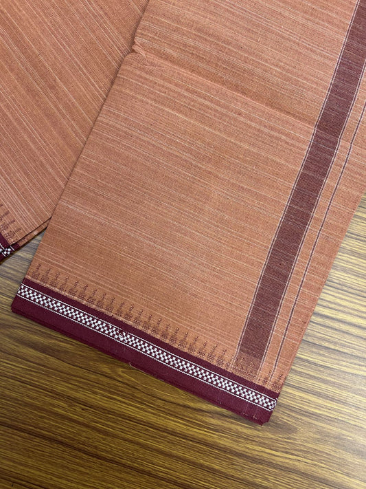Premium Kathar Type Mercerised Pure Cotton Single Mundu Kaitharikada Special - Kaily / Lungi - 60s - 1 inch Peach Brown Striped kara White Body Kuppadam Border (2 meter / 4 muzham) - 8 KK5316 MR