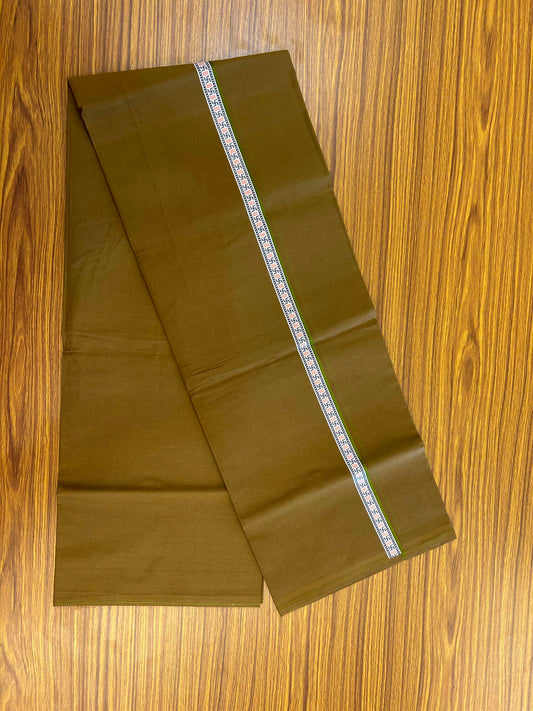 39% Discount! Kaitharikada - Pure Cotton - Single Kaily / Lungi - (60s) - 1 inch Light Olive Green & Multi colour Pattern Printed Kambi kara with Brown colour body (2 meter / 4 muzham) - 13 KK8043 GAN