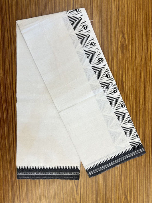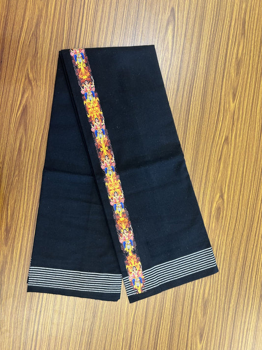 Kaitharikada - Polyster + Cotton - 40s twisted - Pure white Single Kaily / Lungi - 1.5 inch Ayyappan Printed Striped Border with Black colour body (2 meter / 4 muzham) - 14 KK8041 GAN