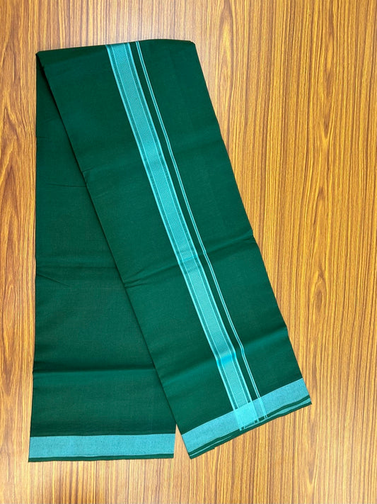 19% Discount!!! Kaitharikada - Single Kaily / Lungi - 1.25 inch Turquoise Green Pattern striped kara with Bottle Green colour body (2 meter / 4 muzham) - 44 KK8035 GAN
