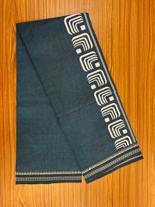 Kaitharikada - Polyster + Cotton - 20s twisted - Single Kaily / Lungi - 2.5 inch White Printed Kuppadam Border with Peacock Blue & Black shaded colour body (2 meter / 4 muzham) - 76 KK8035 GAN