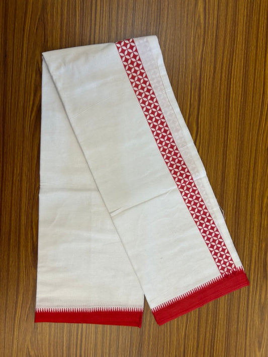 Kaitharikada - Polyster + Cotton - 20s twisted - Pure white Single Kaily / Lungi - 1.5 inch Red Printed Kuppadam Border with White colour body (2 meter / 4 muzham) - 5 KK8035 GAN