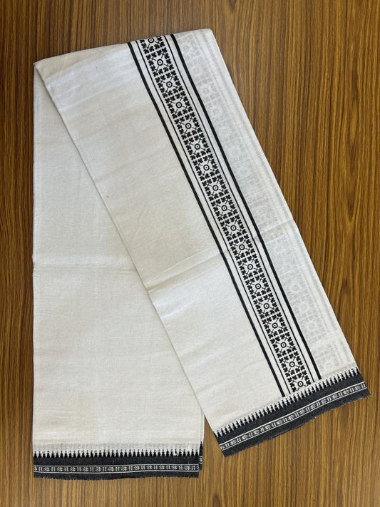 Kaitharikada - Polyster + Cotton - 40s twisted - Pure white Single Kaily / Lungi - 2.25 inch Ayyappan Printed Striped Border with Black colour body (2 meter / 4 muzham) - 15 KK8041 GAN